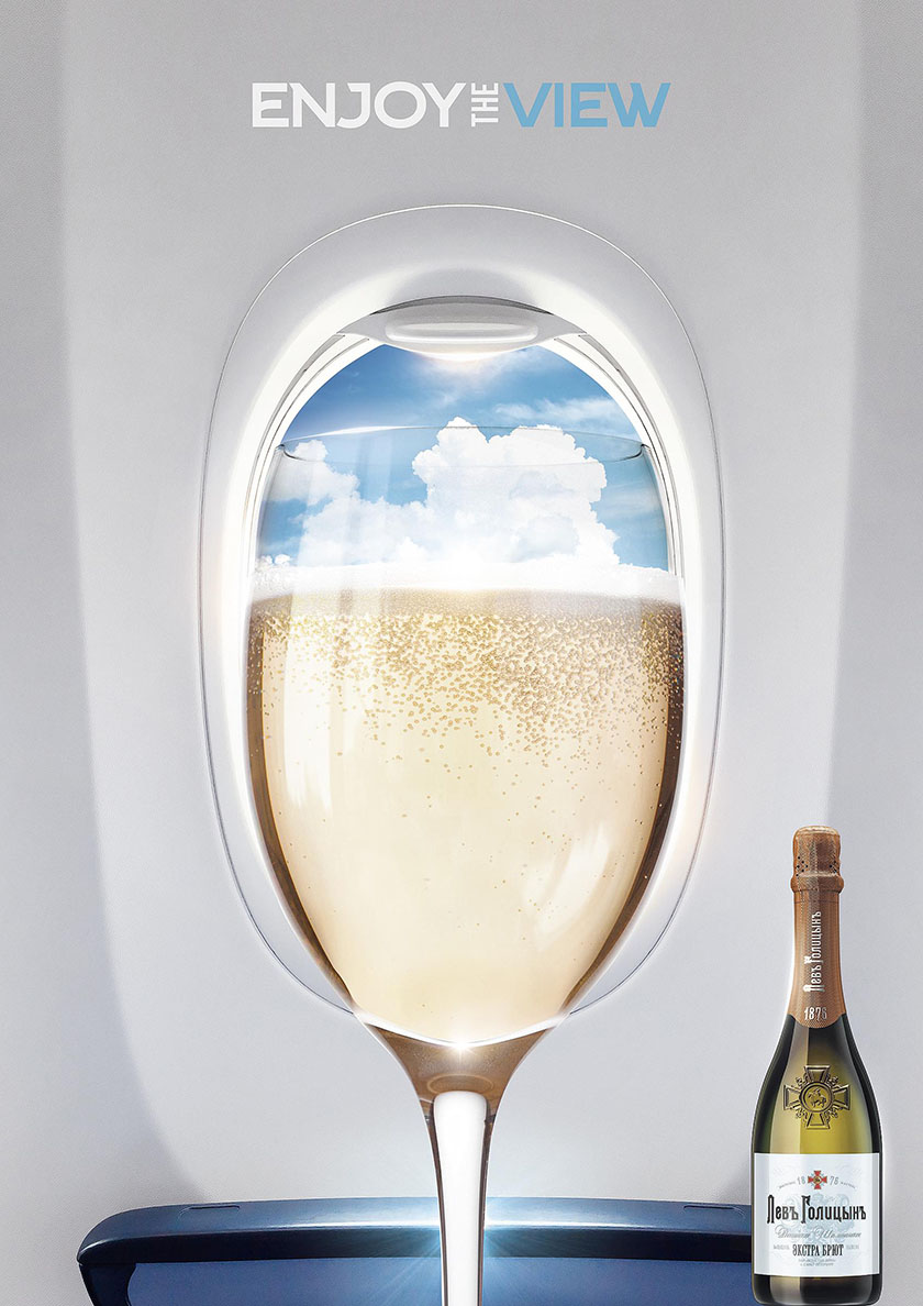 在你正經歷一段商務飛行時,不失為一道美麗風景線的窗外天空可以幫助你打發(fā)無聊時光。但享受旅程中的廣闊視野還有更多選擇。本案例中的美酒品牌在航空雜志上刊登的一則平面廣告, 窗外明媚的天空風光倒映在酒杯中,凸顯出酒的色澤的晶瑩透亮。一邊欣賞著窗外的風景,一邊品嘗著美酒,這則平面廣告利用場景打造 ,帶給受眾美好的產品想象。