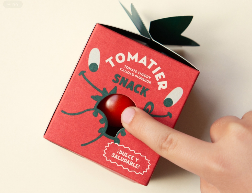 SNACK櫻桃小番茄西紅柿包裝設(shè)計(jì)項(xiàng)目,家樂福特別版。作為其前身Tomatier的延伸而誕生的小吃,不僅誘惑孩子,也誘惑他們的父母,為他們提供一種新鮮健康的午餐或小吃替代品。