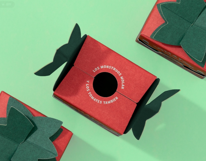 誰(shuí)說(shuō)吃西紅柿很無(wú)聊,而且只適合成年人吃?包裝設(shè)計(jì)公司的建議是將一盒8-10個(gè)櫻桃番茄的訂單轉(zhuǎn)化為一個(gè)有趣的解決方案,提供講故事的機(jī)會(huì)來(lái)發(fā)展溝通。這是關(guān)于一個(gè)可愛的怪物,他喜歡吞噬西紅柿,甚至有了自己的外表。他的嘴上的鬼臉是讓你看到里面產(chǎn)品的窗戶,而他形狀像番茄莖的徽章將起到特殊的閉合作用。